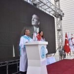 Rektör Prof. Dr. İlkay Salihoğlu ise konuşmasında öğrencilerin uluslarına ve ülkelerine faydalı birer hekim olacağına ve yetişkin birer birey olarak ailelerinin yanına döneceğine duyduğu inancı dile getirdi. İlkay Salihoğlu konuşmasının sonunda Girne Üniversitesi bünyesinde görevdeyken Profesörlük ünvanı alan ilk kişi olan Beyin ve Sinir Cerrahisi Uzmanı Doç. Dr. Halil İbrahim Seçer’i de tebrik ederek kendisine Onur Belgesi takdim etti.